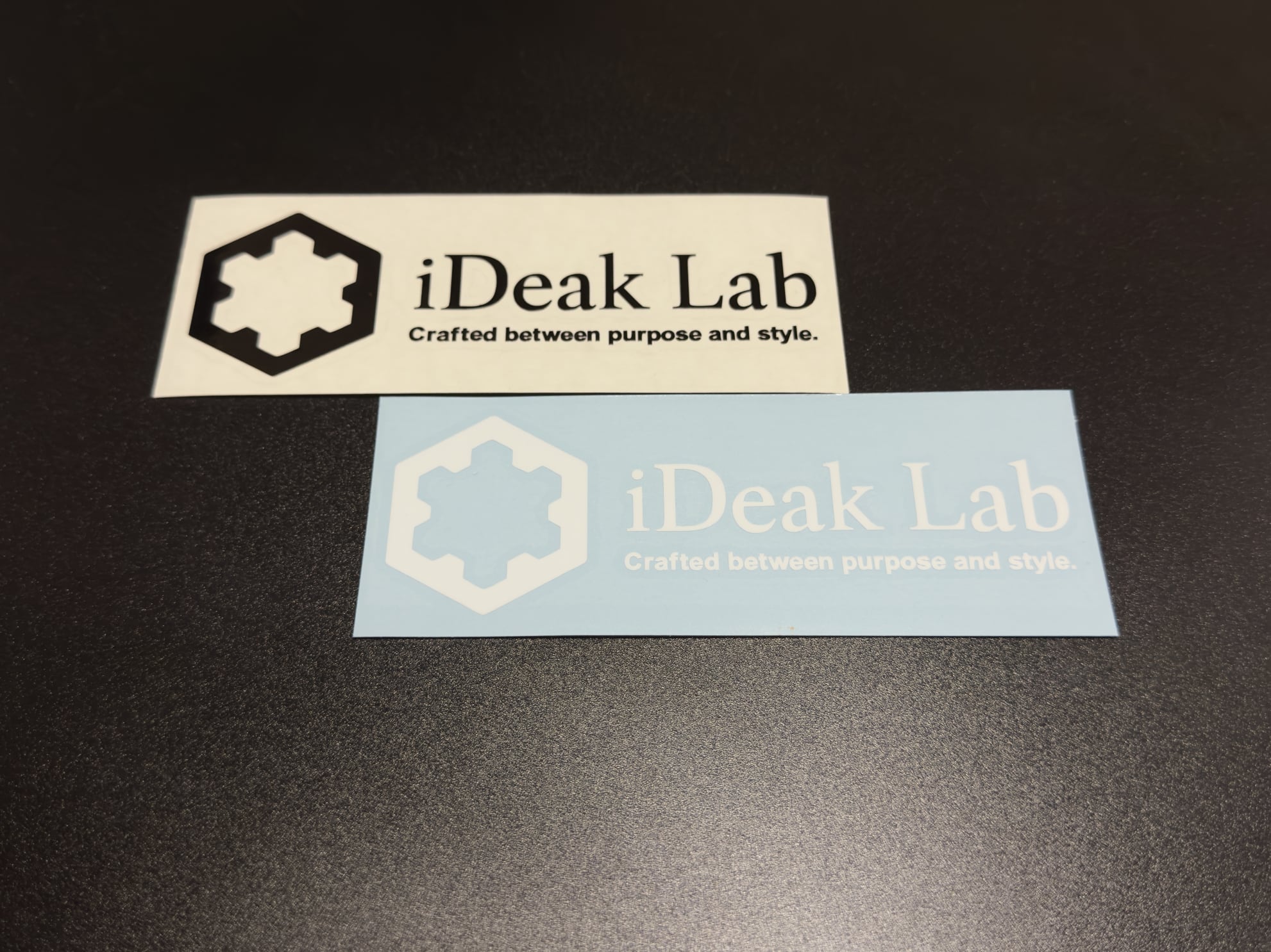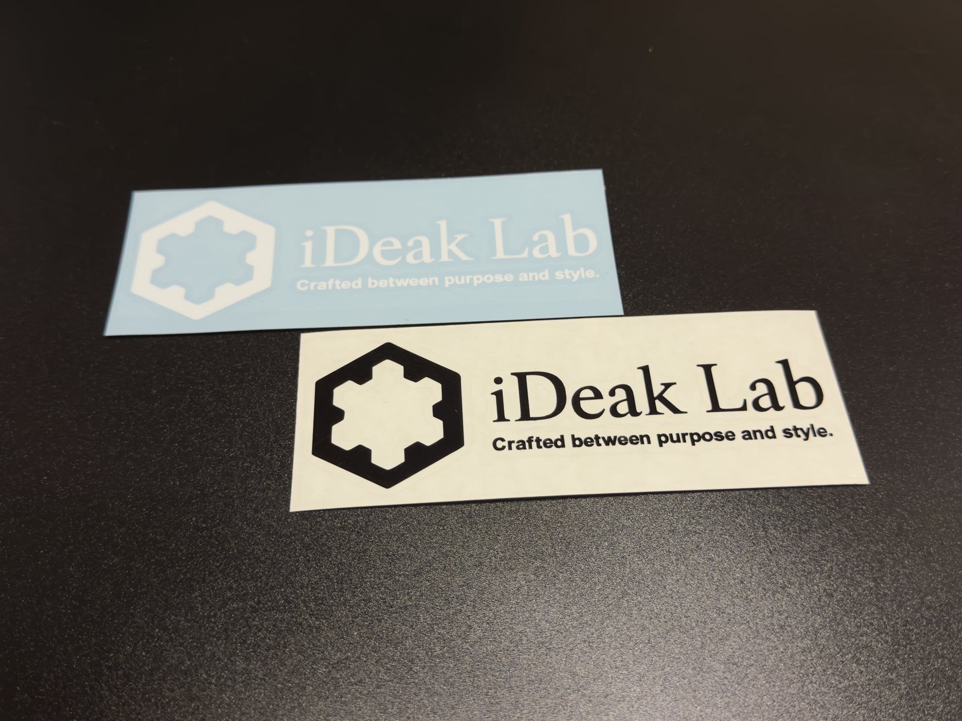 静かなデザインでありながら、確かな存在感を放つ iDeak Lab のロゴステッカー。